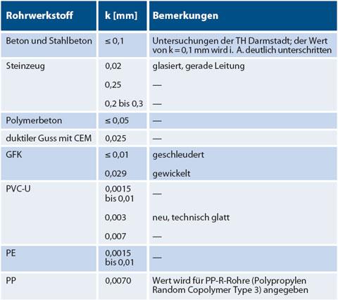 sondern u. a. auch vom Zustand des Rohres (z. B. neu oder gebraucht, Vorhandensein einer Sielhaut, Beschichtung oder Auskleidung, Inkrustationen etc.) abhängig.