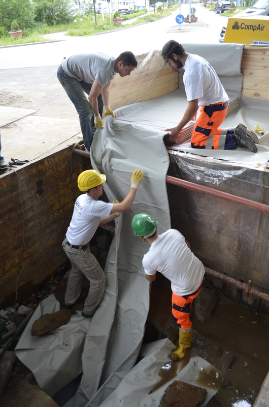 Diese temporären Eingriffe in den Abwasserbetrieb waren hier so sensibel und Bypass-Lösungen organisatorisch und wirtschaftlich derart aufwändig, dass sogar bei der detaillierten Wahl des grabenlosen Sanierungsverfahrens die Baugeschwindigkeit im Fokus stand. Es galt das Zeitfenster so knapp wie irgend möglich zu bemessen und die Arbeiten vor dem Winter fertigzustellen. Und immerhin standen für 2012 rund 1,8 Kilometer Schlauchlining in der Nennweite DN 700 auf dem Sanierungsplan.