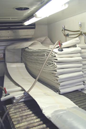 "Standards und Qualität sind ebenso hoch wie bei der Fertigung im Werk", lautet Reinfelders klare Aussage. "Eine den Pumpen nachgeschaltete Messtrecke überprüft die Einhaltung des definierten Mischungsverhältnisses und der vorgegebenen Harzmenge. Elektronische Bauteile überwachen den Mischvorgang." Der vorbereitete Inliner wird mit Wasserdruck im Inversionsverfahren in die zu sanierende Haltung eingebracht. Durch Aufheizen des bei der Inversion benutzten Wassers erfolgt die Aushärtung des Epoxidharz-Systems. "Dabei wird das Wasser im Schlauch durch ein Heizungssystem über mehrere Stunden stabil auf die erforderliche Temperatur gebracht", erklärt Anlagenführer Detlef Warntjes.