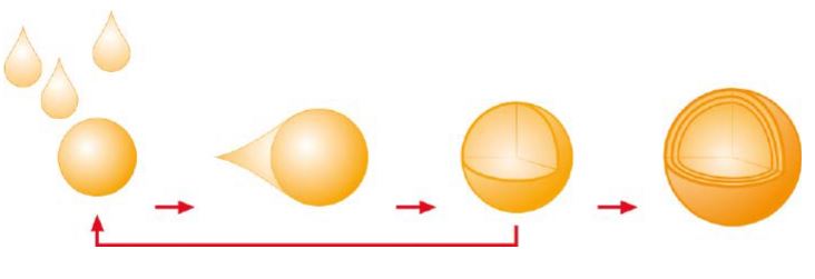 Abb. 3: Die Sprühgranulation in der Wirbel-schicht erlaubt die Trocknung von Flüssig-keiten bei gleichzeitigem, schichtweisem Aufbau von staubfreien Granulaten [Quelle: CITplus]