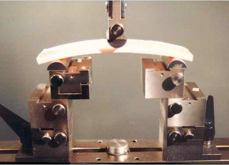 Die Ermittlung der Biegespannung wird nach DIN 13566/4 bzw. DIN EN 178 durchgeführt und beim ersten Bruch des Materials ermittelt.