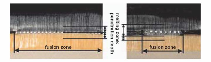 Dennoch zeigen sich Stärken und Schwächen der Heizwendelgeometrie in der Anwendung auf der Baustelle. Mit dem Start des Schweißprozesses erfolgt unmittelbar eine Erwärmung der Heizwendel. Bei ummantelten, verdeckten Heizwendeln muss zunächst die PE-Schicht aufgeschmolzen werden. Durch die thermische Ausdehnung des Fitting-PE-Materials im geschmolzenen Zustand wird dieser Ringspalt geschlossen. Erst dann erfolgt eine nennenswerte Übertragung der Schweißenergie auf das Rohr. Aufgrund dieser Prozesse ist die Wärmeübertragung in der Fügezone behindert, gleichzeitig erfolgt jedoch durch die Ummantelung der Heizwendel eine größere Wärmeeinbringung in den Formteilkörper. Die Folgen sind eine zur Fügeebene asymmetrische Schmelzenellipse (Bild 7), deren Hauptanteil im Fitting liegt und eine reduzierte Kapazität zur Überbrückung des Ringspalts zwischen Rohr und Fitting. Die fertigungsbedingte Lage der Heizwendel und die Dicke der PE-Schicht, die natürlich einen entscheidenden Einfluss auf die Wärmeeindringung im Rohr haben, ist vom Anwender nicht erkennbar, es sei denn durch zerstörende Prüfung oder röntgentechnische Untersuchung.