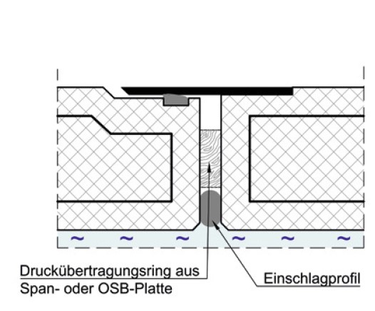 Recht beliebt bei den Vortriebsfirmen ist die Verwendung eines während des gesamten Vortriebs mitfahrenden inneren Fugenverschlusses, der am Druckübertragungsring aus Span- oder OSB-Platten befestigt wird und meist als „Igludichtung“ bezeichnet wird. Allerdings entwickelt dieses Profil (wie jedes andere Profil auch) seine Dichtwirkung nur in einer begrenzten Spannbreite seiner Verpressung.