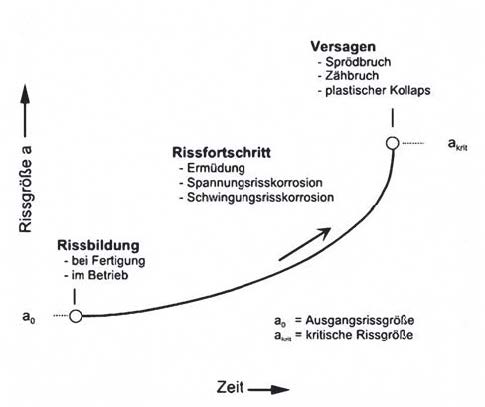 In Bild 3 ist ein typisches „Leck-vor-Bruch“- Diagramm mit den Stadien der Rissbildung dargestellt.