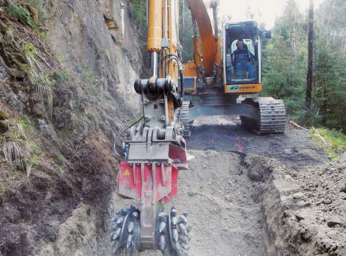 Eine weitere Herausforderung für das beauftragte Bauteam war der felsige Untergrund im oberen Almweg. Der Vorteil einer Rohrkünette im Fels (Bild 8) liegt vor allem darin, dass die Standfestigkeit einer darin eingebauten Druckrohrleitung markant erhöht wird. Allerdings war die Herstellung alles andere als einfach.