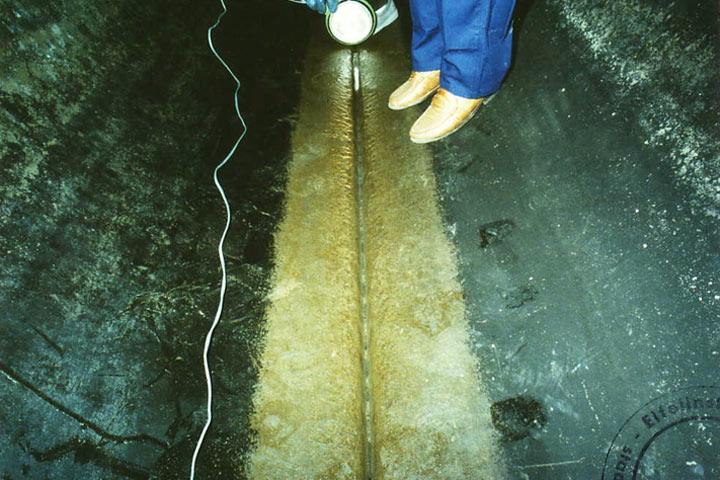 Trotz zehnjähriger Erfahrung mit dem Einbau von Quick-Lock-Manschetten, für einen Einsatz dieser Art lagen auch für die Brüder Dineiger kaum praktische Erkenntnisse vor. "Unter der Voraussetzung, dass alles optimal klappt, kalkulierten wir eine Arbeitszeit von 10 Tagen," schildert Eberhard Dineiger. "Die Koordination der einzelnen Arbeitsschritte und die Zusammenarbeit der Mannschaft auf der Baustelle haben dann jedoch so phantastisch funktioniert, dass wir am 15. September um 20.45 Uhr nach sechs Arbeitstagen erschöpft aber glücklich und noch vor dem aufziehenden schlechteren Wetter fertig waren." 106 Manschetten wurden am letzten Tag eingebaut. "So eine unglaubliche Versetzleistung hat es vorher selbst von der Firma Uhrig, die ja als Systemanbieter auch selbst Manschetten einbaut, noch nie gegeben," unterstreicht Mark Biesalski die Besonderheit dieses Rekordergebnisses.