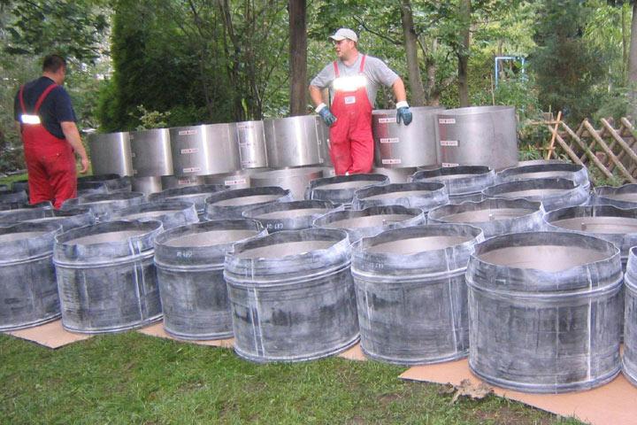 Die 50 Zentimeter langen Manschetten wurden per Container auf die Baustelle geliefert und ausgeladen. Da ein maschineller Transport zu den Einbauschächten aufgrund der örtlichen Gegebenheiten nicht möglich war, mussten alle Manschetten mit einem Einzelgewicht von immerhin 30 Kilogramm per Hand auf der Baustelle vom Lagerplatz zum Einbauort bewegt werden. Im Schacht wurde der Einbaupacker mit einer Manschette bestückt, an einem durch die Haltung verlegten Seil mit Muskelkraft zur Einbaustelle gezogen und dort von einem Mitarbeiter, der sich auf einem Rollbrett liegend in der Haltung aufhielt, millimetergenau mit einer exakt festgelegten Überlappung zur vorigen Manschette positioniert und eingebaut.