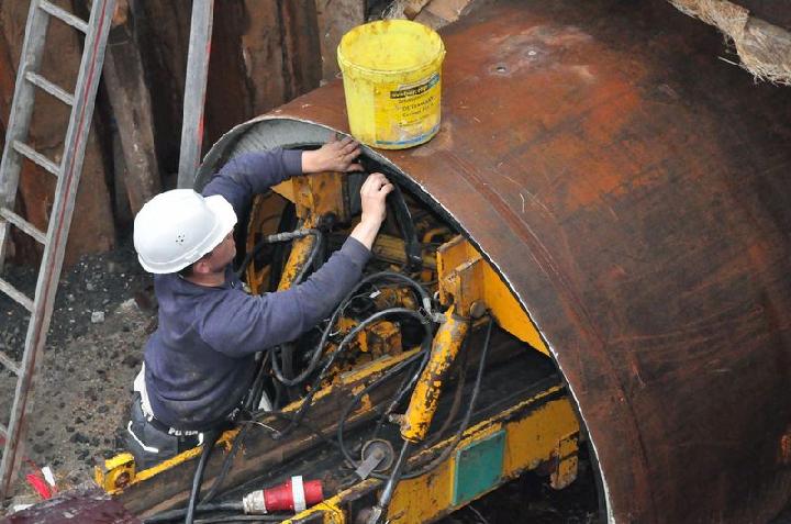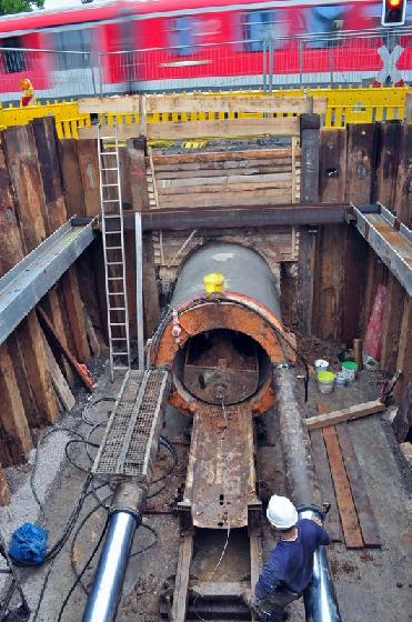 Sieben-Tonnen-Rohre im Schildvortrieb unter Bahntrasse hindurch gepresst