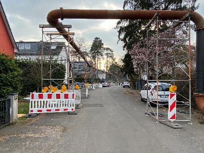 In der Innenstadt und in den Wohnsiedlungen fand die Abwasserhaltung der größeren Abwassermengen von über 250 Kubikmetern pro Stunde über Pumpen und Druckleitungen in der Nacht statt. Der Aufbau wurde mit geringen Beeinträchtigungen für den Verkehr abschnittsweise jeweils tagsüber vorgenommen. Zufahrten, Kreuzungen, Radwege und Fahrbahnen konnten mit Hilfe von Aufständerungen der Abwasserhaltung mit DN 400 Stahldruckrohren freigehalten werden. Die Aufständerungsbauwerke hatten eine Gesamtlänge von 1.100 Metern; diese wurden täglich wandernd auf- und abgebaut. Für diese Arbeitsleistungen des Umbaus und Betrieb der Leitung musste täglich 24 Stunden gearbeitet werden. Die einzelnen Abschnitte hatten jeweils eine Länge von 400 bis 600 Metern.