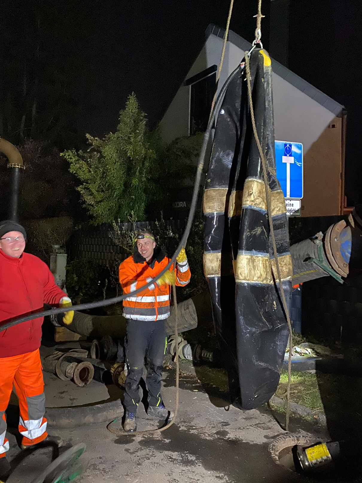 Die Lage des Kanals, dessen Verlauf und die enormen Abwassermengen blieben aber nicht die einzigen Herausforderungen. Die Sorge, dass die Temperaturen bei den nächtlichen Einsätzen deutlich unter den Gefrierpunkt sinken könnten, traf glücklicherweise nicht ein.