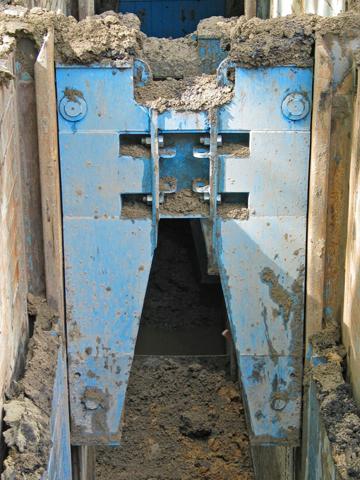 Auch hierfür ist das Linearverbausystem bestens gerüstet. Sowohl die Träger als auch die Verbauplatten sind mit vertikal durch die Bauteile verlaufenden Injektionsrohren versehen, durch die bei Bedarf während des Ziehvorgangs ein spezielles Füllmaterial in den Boden eingebracht werden kann. Ein Konstruktionsmerkmal, mit dem E+S die Anforderungen vieler Tiefbauämter, Ingenieurbüros und Bauunternehmen nach einer geringst möglichen Bodensetzung im Grabenbereich erfüllt hat. Die Stützen wurden so konzipiert, dass spezielles Füllmaterialien während des Ziehvorgangs durch die Stütze in den Boden eingebracht werden kann. Um dieses Resultat zu erzielen, wurden die Stützen oben mit einer verschließbaren Einfüllöffnung und im unteren Bereich mit einer abnehmbaren Schutzklappe versehen.
