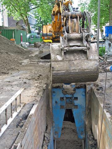 Neben der Verfüllung der Baugrube mit einem vor Ort aufbereiteten Aushubboden und der Rohrverlegung mit einem ferngesteuerten Verlegegerät zählte das Linearverbausystem von E+S dazu. Im Vorfeld des Pilotprojekts haben die Hückelhovener Verbauprofis das leistungsstarke Verbausystem mit weiteren technischen Leckerbissen ausgestattet: Über ein System von so genannten Injektionsrohren können Baugruben ohne Arbeitsraum beim Ziehen des Verbaus verfüllt werden. Darüber hinaus sorgt eine modifiziere Laufwagenkonzeption für ein reibungsloses Handling und größtmögliche Flexibilität beim Ein- und Rückbau der Verbaumodule sowie beim Verlegen der Rohre.