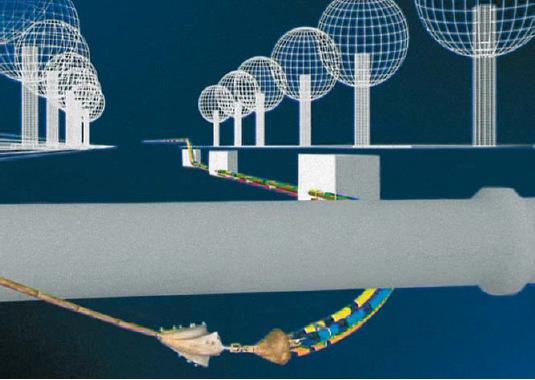 Jüngstes Referenzprojekt der "Parallelen No-Dig-Technik" ist eine 250 Meter lange Verlegung der Sparten Gas, Wasser, Telekommunikation und Kabel TV entlang einer viel befahrenen Bundesstrasse. Besondere Schwierigkeiten dabei waren die Dükerung eines Bachlaufs sowie zwei kreuzende Gas-Hochdruckleitungen mit Durchmessern von DN 1000 und DN 300. Die gesamte Verlegemaßnahme konnte dabei in nur vier Arbeitstagen komplett realisiert werden (Abb. 5).