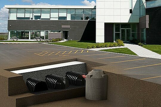 Abbildung 4: DRAINMAX Tunnelsystem zur Versickerung von Ablaufwasser, versiegelter Flächen. [Quelle: INTEWA]