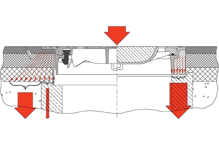 Nicht nur die Mörtelfuge erweist sich als Schwachstelle gängiger Konstruktionen, sondern auch der leicht vertiefte Einbau der Abdeckungen. Aus dieser Problemstellung ergaben sich die Merkmale des Systems Multitop Bituplan. Man verzichtete auf eine Mörtelfuge und versah die Abdeckung mit einem auskragenden Rand, der eine materialschonende Kräfteverteilung möglich macht. Die Verkehrslasten werden nicht mehr direkt in den Schachtkörper, sondern in die angrenzende Fahrbahn eingeleitet. Weil das System Multitop Bituplan oberflächenbündig eingebaut wird, kommt es nicht zu Schlagbelastungen beim Überrollen, was auch die Geräuschemission wesentlich reduziert. Zur Verschleißminimierung trägt außerdem die dämpfende Einlage im Bituplan Rahmen bei. Da die Einlage direkt im Rahmen wirkt, entsteht eventuell auftretender Verschleiß am Deckel, der schnell und kostengünstig austauschbar ist. Zum Vergleich: Bei Verschleiß müssen konventionelle Rahmen ausgebaut und durch neue ersetzt werden – dies verursacht nicht nur hohe Sanierungskosten, sondern auch Verkehrsbehinderungen.
