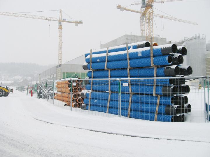 Auch beim Kanalbau zur Schmutzwasserableitung in die firmeneigene biologische Kläranlage setzte das planende Ingenieurbüro für Bauwesen in Biessenhofen auf die Technologie und das Know-how des Unternehmens. So fiel hier die Wahl auf das Hochlast-Kanalrohrsystem AWADUKT PP SN16 RAUSISTO.
