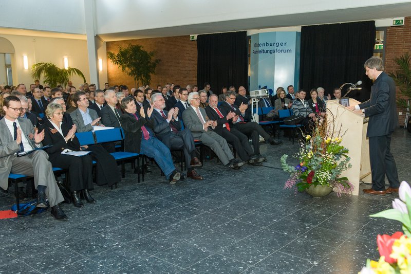 Er warf einen Blick zurück auf die Entwicklung des Fachforums, das im Januar 1987 ins Leben gerufen wurde. In einem Hörsaal der Fachhochschule Oldenburg gab es damals zwei Tage lang Vorträge zum Thema „Kunststoffrohre im Bauwesen“. „12 Referenten und 10 Fachfirmen bildeten den Rahmen der Veranstaltung, zu der rund 100 Teilnehmer kamen“, berichtete Schreiber. Im nächsten Jahr sollte sich die Teilnehmerzahl schon verdoppeln, nach nur 10 Jahren hatte sich die Anzahl der Beteiligten am Oldenburger Rohrlei-tungsforum verzehnfacht. Und heute? „Sowohl die Reputation und Anzahl der Referenten als auch die Zahl der ausstellenden Firmen und der Teilnehmer aus dem In- und Ausland sind Beleg dafür, welchen Stellenwert das Oldenburger Rohrleitungsforum heute genießt“, so der Redner weiter, der dem Veranstalter bescheinigte, den Wert und die Bedeutung der unterirdischen Infrastruktur erkannt zu haben. Das habe maßgeblich dazu beigetragen, dass sich diese einzigartige Plattform für die Kommunikation von Wissenschaft, Wirtschaft, Industrie und Handwerk entwickeln konnte.
