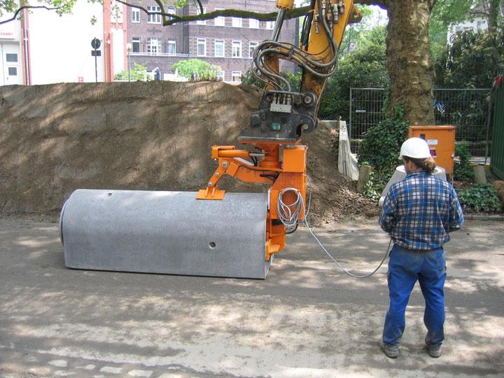 - Entwicklung eines Rohrverlegegerätes als Anbaugerät für einen Hydraulikbagger mit welchem die Arbeitsschritte Ablassen in den Rohrgraben, Ausrichten und Zusammenfügen der „optimierten Rohre“ weitgehend automatisiert erfolgen (WIMAG GmbH, Obernburg).