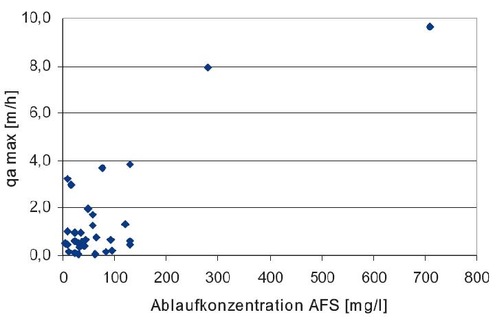 | Steiggeschwindigkeit bei Oberflächenbeschickung [m/h] | 9,3 | 8,8 | 7,6 | 5,8 | 2,4 | 13,4 |