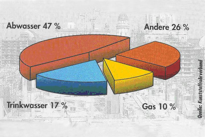 Durch die Auflage an den Betreiber, Kanäle und Abwasserleitungen regelmäßig zu untersuchen, die Schadensbilder zu klassifizieren und - als kostenintensive Konsequenz hieraus - Instandsetzungsmaßnahmen durchzuführen ist der Zustand unseres Kanalnetzes inzwischen gut bekannt. Undichte Kanäle und Abwasserleitungen stellen bei Abwasseraustritt eine potentielle Gefährdung des Grundwassers dar oder führen bei Infiltration zu einer Überlastung der Kläranlagen. Die Folge der Undichtigkeit sind Einschwemmungen und Wurzeleinwuchs, gleichzeitig Hinterspülungen im Bettungsbereich und in Folge dessen eine stetig wachsende Schädigung der Rohrleitung. Als häufigste Schäden an Kanalleitungen aus konventionellen, spröden Rohrwerkstoffen werden Risse, Scherbenbildung bis zum Einsturz des Kanals und Korrosion sowie undichte Muffenverbindungen und Muffenversatz erfasst.
