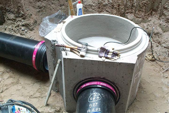 Polyethylen-Rohre (PE-Rohre) werden aufgrund ihrer vielfältigen Vorteile nicht nur in der Druckentwässerung, sondern auch im Bereich der Kanalisation eingesetzt. Eine homogene Materialverbindung durch Heizwendelschweißen bietet höchste Sicherheit gegenüber den Beanspruchungen des dauerhaften Betriebes der Rohrleitung. Im System wird die bewährte Technik daher konsequent für Schachtanbindung, Hausanschluss und Rohrverbindung eingesetzt.