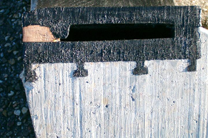Das Schachtfutter ASF (Bild 9) aus PE-HD ist konstruktiv mit einer hohen Ringsteifigkeit ausgelegt und wird durch die Außenprofilierung sicher im Betonschacht verankert. Rohrspannungen und Belastungen durch Schachtsetzungserscheinungen können durch die elastische Abwinkelung des Innenrings kompensiert werden, ohne Dichtheit oder Funktion zu gefährden. Auch ist das Bauteil in dieser Konstruktion so gestaltet, dass Spannungen durch thermische Ausdehnung flexibel abgebaut und damit vom Betonring abgehalten werden. Schnittbild 9a zeigt die Verkrallung der T-Stege am Futter im Betonschacht und die elastomere Zwischenschicht, die die Flexibilität der Schnittstelle gewährleistet. Das Bauteil ist entsprechend den Abmessungen der Betonfertigteilschächte dimensioniert. In der Regel wird das Abwasserschachtfutter vom Betonwerk bei der Herstellung mit einbetoniert, kann aber auch auf der Baustelle eingesetzt werden. Um Sohlengleichheit im Gerinne zu erreichen, ist es wichtig, dass bei der Gerinneauslegung des Schachtunterteils die Rohrwanddicke gewählten PE-Rohres sowie die Wanddicke der Abwassereinschubmuffe berücksichtigt wird.