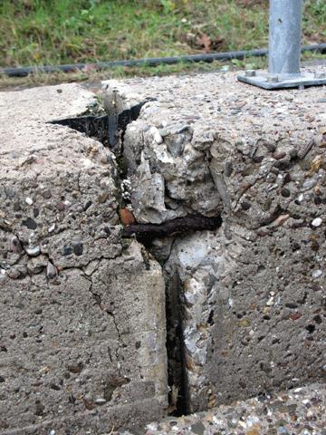 Altersbedingter Instandhaltungsbedarf zeigt sich bei Regenbecken vor allem in zwei Bereichen, wenn man Armaturen und Installationen wie Drosselklappen einmal außer Betracht lässt: Bei Becken, die 30 bis 40 Jahre in Betrieb sind wie jene in Siegburg, altert einerseits die Betonsubstanz selbst. So zeigte sich bei beiden Becken durch die Einwirkungen des Abwassers eine teilweise flächige Korrosion bis hin zur Bildung einer typischen Waschbeton-Struktur. Umweltrelevanter und eigentlicher Anlass der Sanierung war andererseits der Zustand der Fugen in beiden Bauwerken. Die ehemals elastischen Fugen waren versprödet, in ihrer Substanz angegriffen und undicht. Die beiden Braschoßer Becken haben eine Fugenlänge von 325, die Anlage Stallberg von 350 Metern. "Ergänzt" wurden die schadhaften Fugen in beiden Bauwerken durch vereinzelte Risse in der Betonsubstanz.