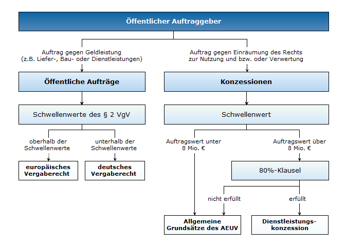 Von dem Anwendungsbereich dieser Vorschriften ausgenommen sind aber die so genannten Dienstleistungskonzessionen. Dieser Terminus bezeichnet Verträge, durch die staatliche oder kommunale Aufgaben an einen Dritten übertragen werden. Dieser erhält als Gegenleistung für die Erbringung der Dienstleistung nicht einen vorher festgelegten Preis, sondern das Recht, die eigene Leistung zu nutzen oder wirtschaftlichen zu verwerten. Diese Ausnahme bedeutet, dass sich die Gemeinden bei der Übertragung von Konzessionen bislang nicht an die strengen Regeln des europäischen Vergaberechts halten müssen.