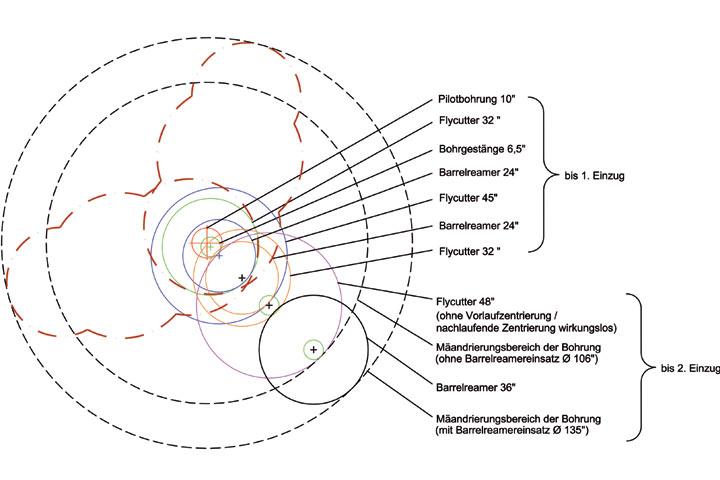 Ein zentrales Problem bei der Ausführung von großkalibrigen Bohrungen für wenig elastische Rohre ist häufig das unbeabsichtigte Unterschreiten der erforderlichen Auffahrradien. Durch die im Verhältnis erheblich höhere Biegesteifigkeit von Stahlrohren zunehmender Durchmesser steigen die Mantelreibungskräfte beim Einzug der Leitung bereits bei geringfügigen Abweichungen von den geforderten Auffahrradien so stark an, dass es als Folge zu erheblichen Beschädigungen der Rohrumhüllung und sogar zum Festwerden der Rohrleitung kommen kann.