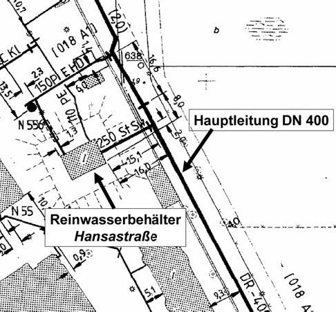 über eine Speicherkapazität von 15.000 m3 Trinkwasser, wobei vier der Behälter jeweils unmittelbar vor dem Wasserwerksausgang angeordnet sind. Der fünfte Reinwasserbehälter "Hansastraße" dient mit 2.000 m3 als Netzbehälter.