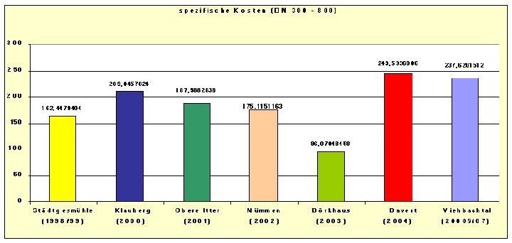 Kosten /Wirtschaftlichkeit Investitionen im Bereich der Kanalrenovation betragen bisher insgesamt ca. 5,7 Mio. €. Dies ergibt bei Division der Investition durch die Renovationslänge spezifische Kosten von 187,-- €/lm. Als nächstes gilt es, die Wirtschaftlichkeit der gewählten Sanierungsstrategie zu belegen. Dies ist nur im Kostenvergleich mit der konventionellen offenen Bauweise möglich. Hierzu wurden die spezifischen Kostensätze für alle renovierten Querschnitte ermittelt und in den Vergleich zur offenen Bauweise gestellt. Bei einem solchen Vergleich sind die unterschiedlichen Abschreibungszeiträume zwingend zu berücksichtigen. Die durchschnittliche Nutzungsdauer von Steinzeugrohren wird vom Hersteller mit 70 - 100 Jahren unter idealtypischen Bedingungen angegeben. Die Nutzungsdauer des bislang ältesten Inliners beträgt 35 Jahre. Somit wäre es falsch, einfach die spezifischen Kostensätze zwischen geschlossener und offener Bauweise zu vergleichen. Bei der Hochrechnung der Renovationskosten auf eine "Lebensdauer" von 90 Jahren Nutzdauer wird deutlich, dass die Kosten der grabenlosen Sanierung unter denen der konventionellen offenen Bauweise liegen. Dies bedeutet, dass eine erneute Renovation in 30 und in 60 Jahren immer noch wirtschaftlicher wäre als eine Reparatur in der herkömmlichen offenen Bauweise.