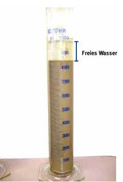 Wird handelsüblicher Zement der bentonithaltigen Bohrspülung im Mischer zugegeben, so kommt es zur Destabilisierung der Bohrspülung. Durch die Sedimentation der in der Spülung suspendierten Feststoffteilchen bildet sich bis zu 20 Vol.% freies Wasser.