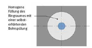 Selbsterhärtende Bohrspülungen sind trotz des Bindemittelanteils sedimentationsstabil und weisen gute rheologische Eigenschaften auf (Tab. 1). Der Bohrprozess führt zu einer gleichmäßigen Verteilung des in der Spülung enthaltenen Bindemittels im gesamten Ringraum. Nach Ablauf der Verarbeitungszeit (standardmäßig ca. 2 Tage) härtet die Spülung langsam aus und bewirkt so eine kraftschlüssige Stabilisierung und eine erosionssichere Abdichtung des Bohrkanals.