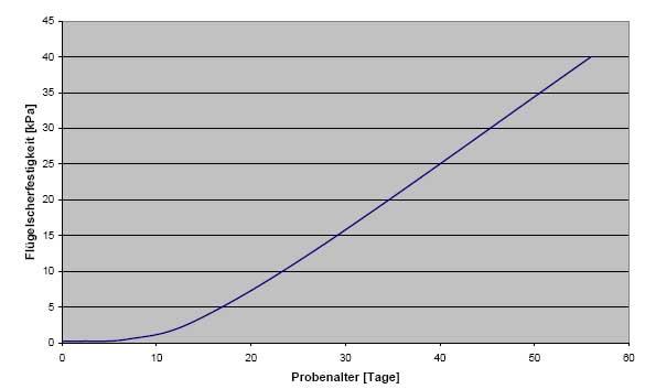 Anschließend wird ermittelt, welche Scherfestigkeitsentwicklung bei den im Boden herrschenden Temperaturen (10 °C) stattfindet. Dazu werden die Bohrspülungsproben bei 10 °C in einer Klimakammer gelagert und nach 7 Tagen, 14 Tagen, 28 Tagen und 56 Tagen geprüft.