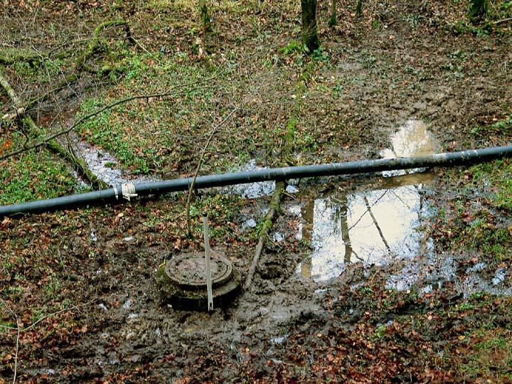 Dies alles geschah unter Randbedingungen, die auch die SMG-Sanierer bislang eher selten zu sehen bekommen haben. Fast alle Schächte standen in tiefem Morast, viele buchstäblich im Wasser, das nicht selten erkennbar anstieg, nachdem der Schacht abgedichtet war. Dies bewies nicht nur den Sanierungserfolg, sondern enthüllte zugleich, dass in ferner Vergangenheit offensichtlich einige Grundwasserquellen regelrecht ins Schmutzwassernetz "integriert" worden waren, die nun künftig wieder außerhalb des Schachtes sprudeln. Nicht nur die Arbeit in den sehr beengten Schächten war mühselig, sondern häufig schon der Weg dorthin und die Baustellenlogistik. Jeder einzelne Sack Zement und jedes Rohr für die Wasserhaltung musste über teilweise erhebliche Distanzen und durch unwegsames Gelände "zu Fuß" an den Einsatzort getragen werden.