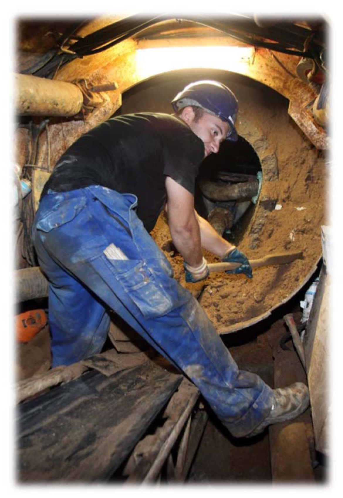 Mit der Tübbingschildvortriebsmaschine von Himmel & Hennig lassen sich kreisrunde, 1,56 m große Stollen aus Stahlbeton zur Neuverlegung und Auswechselung von Ver- und Entsorgungsleitungen herstellen. Die geschlossene und setzungsfreie Bauweise ermöglicht es platzsparend und nahezu unabhängig von bestehender Infrastruktur zu bauen.
