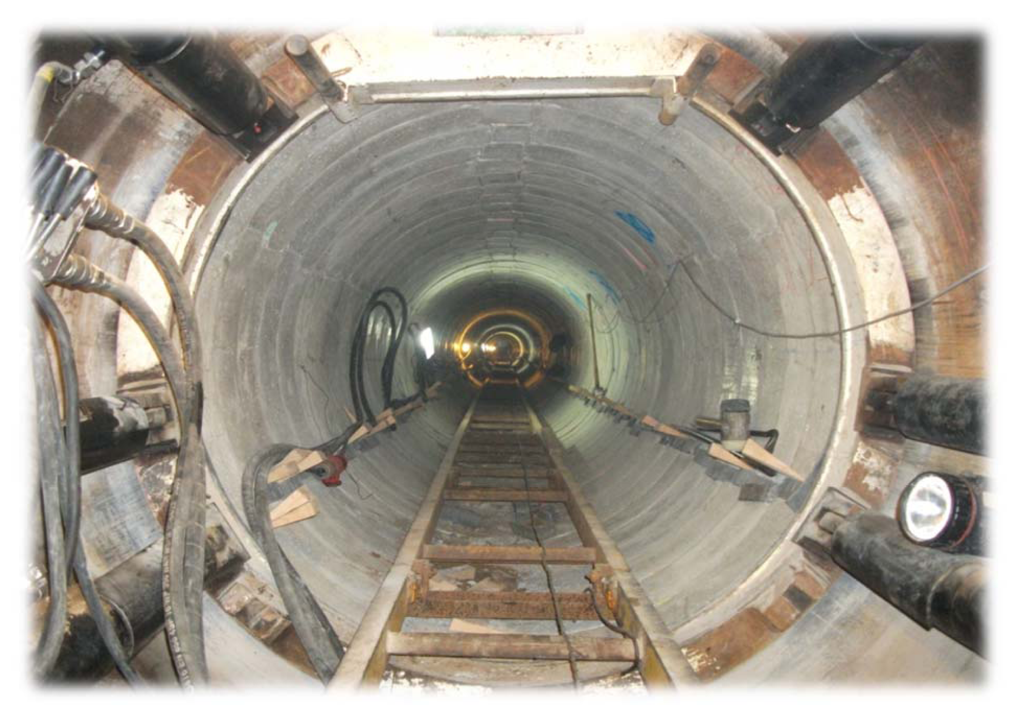 Nach Fertigstellung des Stollens werden die Produktrohre eingebaut und danach der Stollen verdämmt.