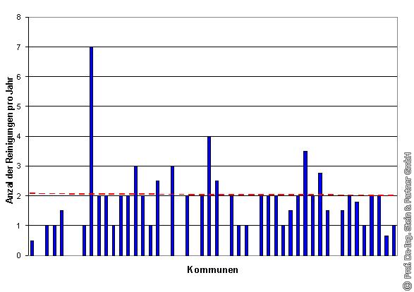 Sowohl die Reinigung von SB als auch von SS wird im Mittel 2-mal jährlich in den beteiligten Kommunen durchgeführt (s. Bild 4 und Bild 5).