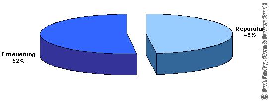 3.2.2 Sanierung von Straßenabläufen und Anschlusskanälen Die Sanierung von Straßenabläufen erfolgte bisher zu 48% durch Reparatur und zu 52% durch Erneuerung (s. Bild 16).