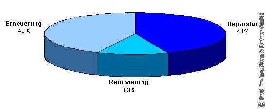 Bei der Sanierung von Anschlusskanälen fand neben der Reparatur (44%) und der Erneuerung (43%) noch die Renovierung (13%) Anwendung (s. Bild 17).