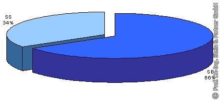 Bei Erneuerungsmaßnahmen von Straßenabläufen zeichnet sich ein deutlicher Trend zugunsten des Typs SB ab (66%). Der Typ SS kommt mit 34% nur halb so oft zum Einsatz (s. Bild 21). Begründet wird dies mit einer Kostenersparnis bei Material und Einbau bedingt durch die geringere Bauhöhe.