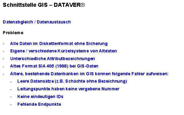 Alle Entscheide basieren auf Daten, Informationen und Wissen. Will man fachlich fundiert und zukunftsorientiert Entscheide fällen, ist man auf ein durchdachtes konzeptionelles Datenmanagement angewiesen. In der Schweiz wurde in den Jahren 1992 - 2006 die Generelle Entwässerungsplanung erarbeitet. Während dieser Zeit wurde die Bedeutung der langfristigen Datenpflege (und Investitionsschutz) erstmals vertieft thematisiert. Die während der Erarbeitungsphase des GEP erhobene Vielzahl geographischer Daten sowie zugehöriger Sachdaten sind die Grundlage, respektive Arbeitsbasis, für die kontinuierliche Erfüllung der Gewässerschutzaufgabe.