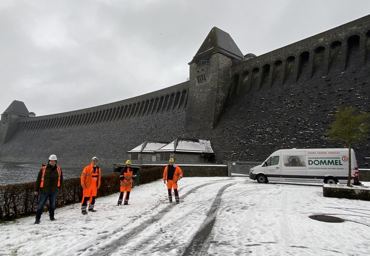 Am Fuße der Möhnetalsperre in Nordrhein-Westfalen setzte die Sanierungstechnik Dommel GmbH ein beschädigtes Betonrohr aus den 1950er-Jahren instand. Auf einer Länge von knapp 40 Metern wurden mithilfe des Tight-in-Pipe-Verfahrens (TIP) neue Kurzrohre aus Polypropylen eingebaut. Die Temperaturen des Winters waren dabei nur eine Herausforderung, der sich die Kanalprofis stellten.
