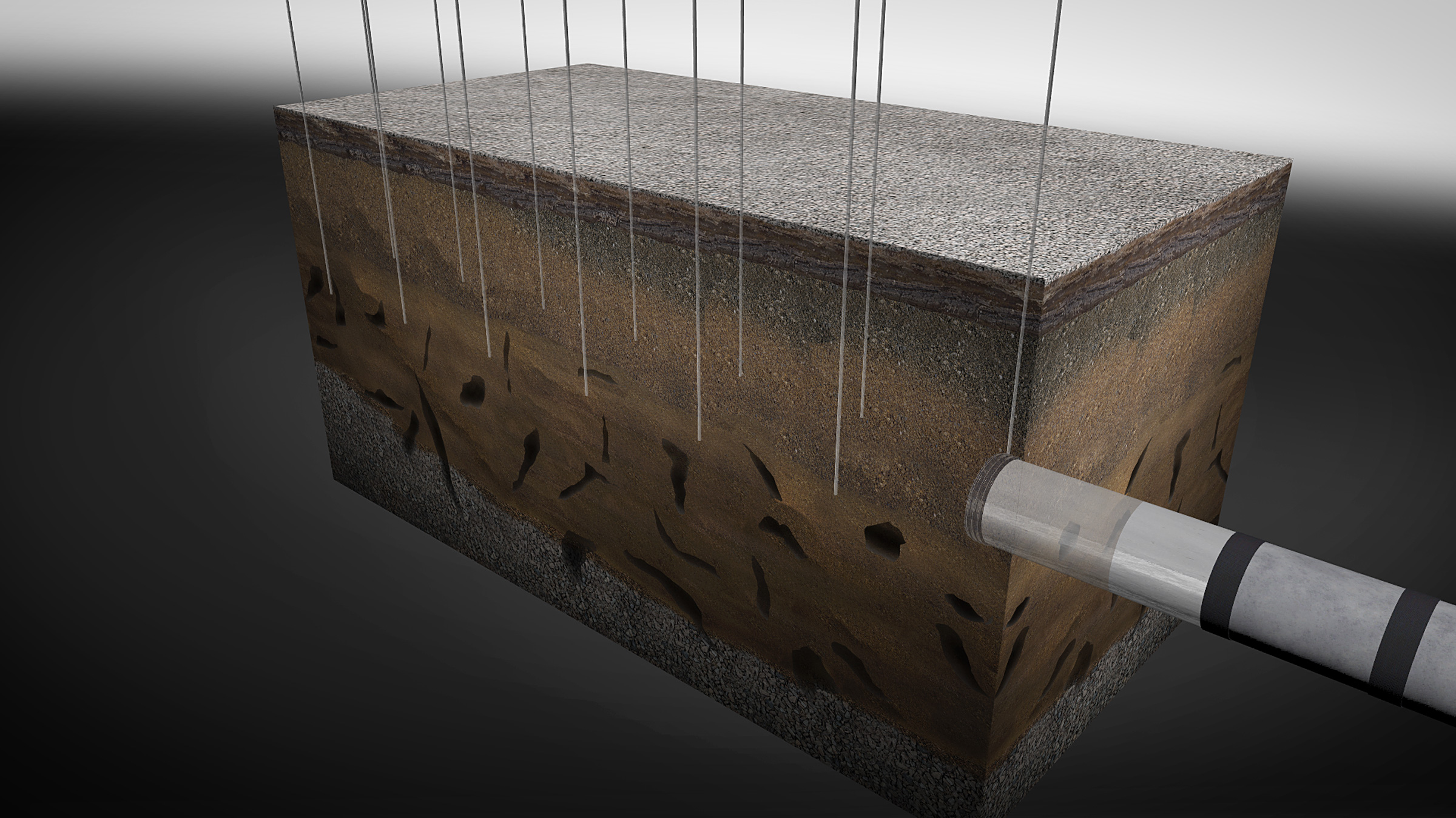 Ziel der Maßnahme ist es, den Boden durchgehend und sicher zu verfestigen. Das soll den Bereich bis etwa ein Meter oberhalb und etwa ein Meter beidseitig neben der Vortriebsachse einschließen, um ein Nachbrechen oder Ausböschen der Bodenschichten beim Vortrieb zu verhindern.