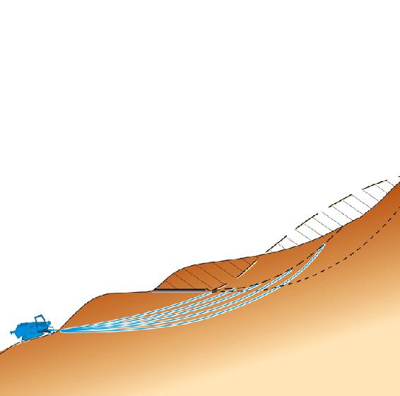 Hangentwässerungen sind bei Erschließungen in geneigter Geländelage oder zum Beispiel im Auffahrungsfeld von Tunneln oft erforderlich. Die Vermeidung von andrückendem Bergwasser durch Herunterziehen des Bergwasserspiegels ist hier das Ziel, um von vorne herein eine Trockenhaltung von Baugruben, Ausschachtungen und Vortrieben zu bewirken. Im trockenen Baugrund zu arbeiten bedeutet häufig auch einen Stabilitätsgewinn, ein weniger aufwändigeres Arbeiten, mehr Baufreiheit, den Schutz vor saisonalen Grundwasserereignissen und unkontrollierten Einbrüchen. Durch HDD-Bohrungen können Drainagen gelegt werden, die unter Anbindung an Bauwerksdrainagen zu Dauerentwässerungssystemen umgewandelt werden können.