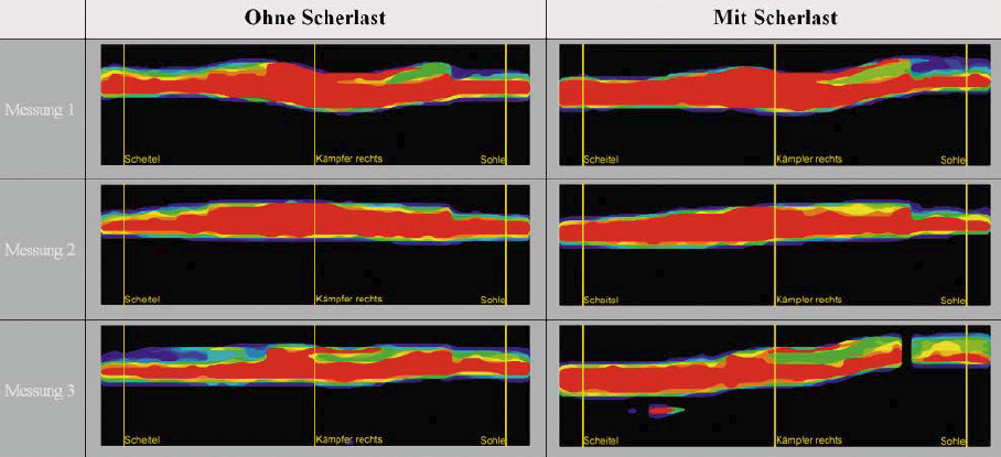 Messung 3) ohne Scherlast-Wirkung 17,8 bar, mit Scherlast-Wirkung 18,8 bar.