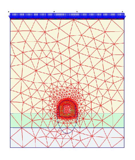 Grundlage für die Standsicherheitsuntersuchung des Bahndurchlasses bildete das Arbeitsblatt ATV-DVWK-A 127 [2]. Die Überprüfung der Standsicherheit des gemauerten Profils erfolgte mittels der Finiten-Elemente-Methode (FEM) mit dem Computerprogramm Plaxis (s. Bild 5).