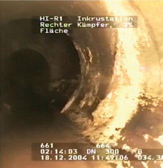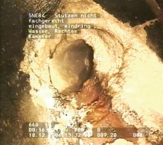- gleichzeitig sind an gleicher Stelle oder benachbart Schäden am Kanalnetz in Form von Rissen, Scherbenbildung, Muffenausbrüchen und/oder anderen Undichtigkeiten vorhanden.