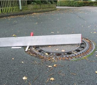 - Die betreffenden Schäden an der Verkehrsflächenbefestigung müssen sich im Bereich von Schächten, Fahrbahnabläufen und/oder Kanalhaltungen befinden und