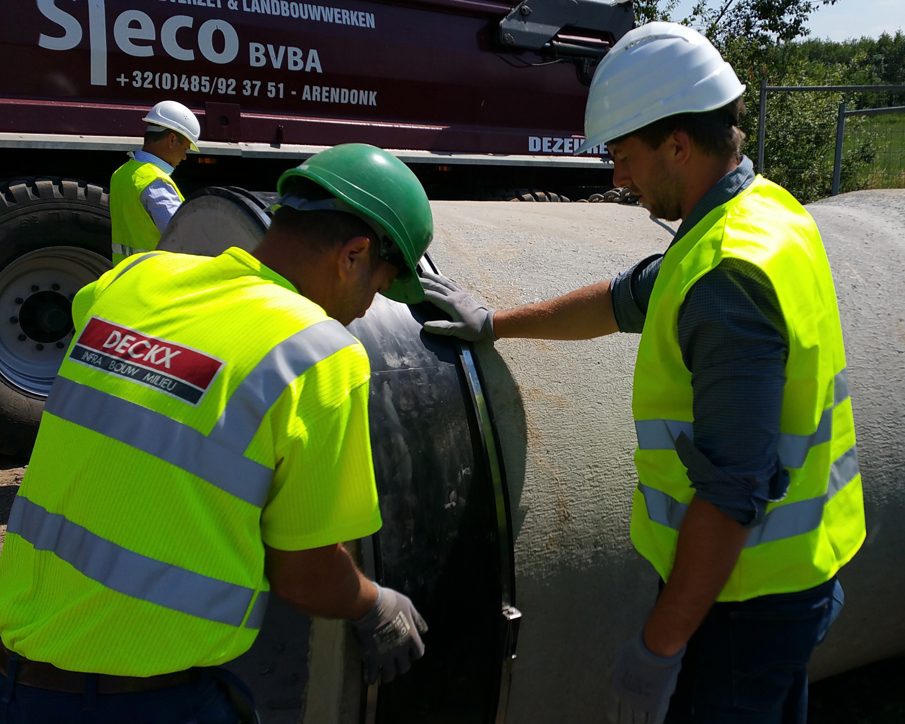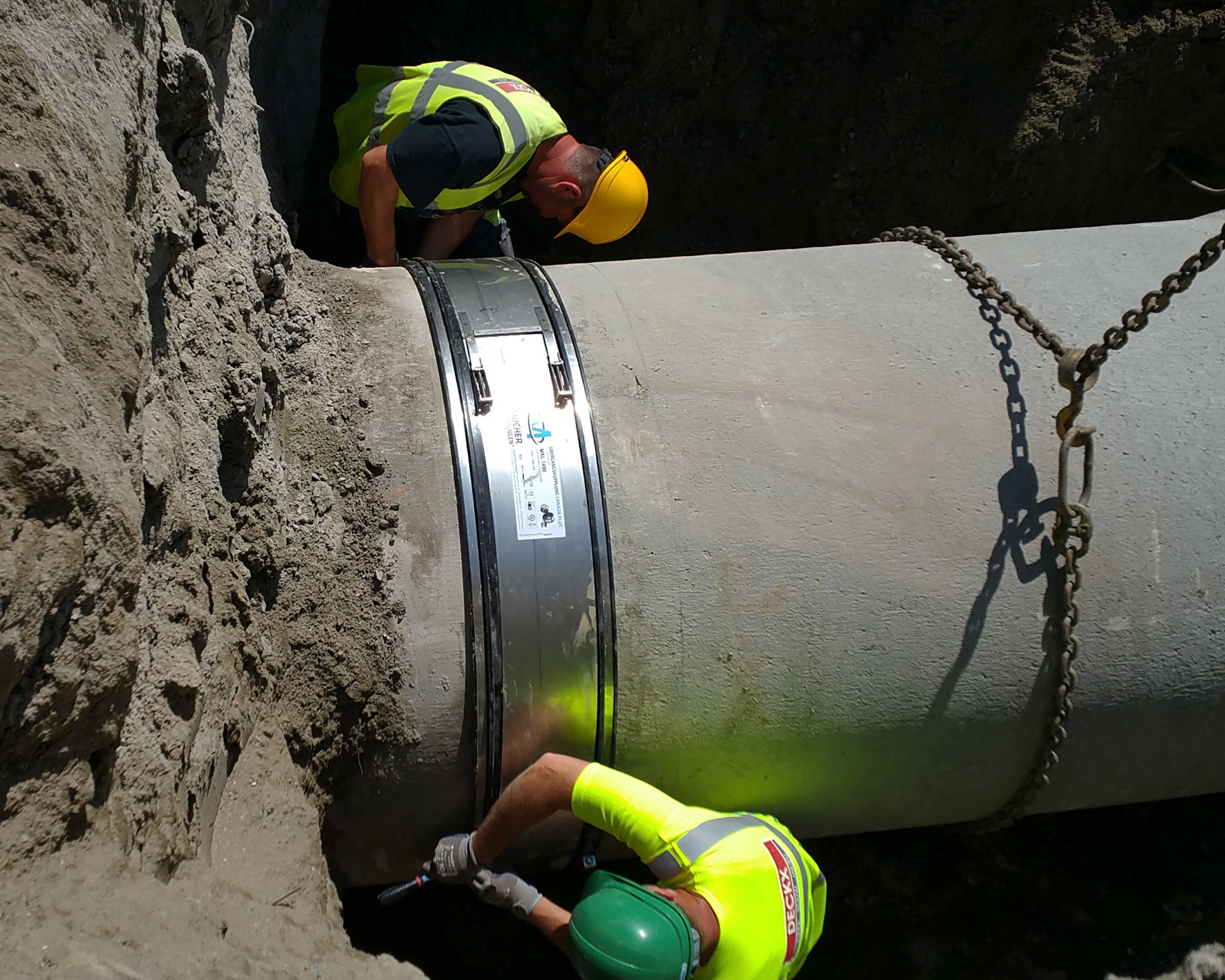 Für die Verbindung der geschnittenen Stahlbetonrohre mit einem Außendurchmesser von 1480 mm entschied sich der Bauherr Aquafin für die Übergangskupplung Canada Titan XL, die bei allen gängigen Rohrmaterialien der drucklosen Entwässerung ab einem Rohraußendurchmesser von 300 mm eingesetzt werden kann. Aquafin ist der zweitgrößte Netzbetreiber in Belgien und lässt die Planungen bei Großprojekten regelmäßig durch das Ingenieurbüro Tractebel durchführen.